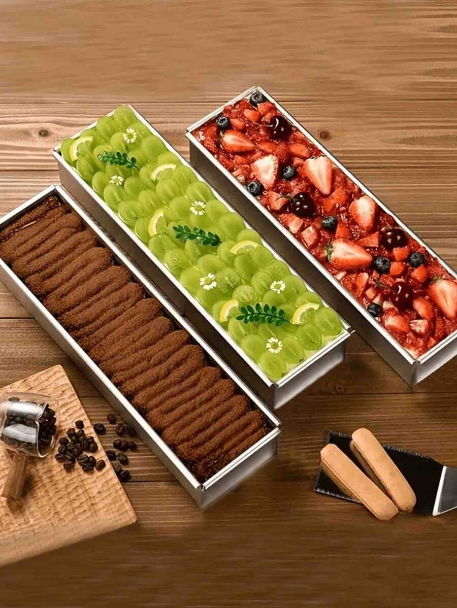 LINKOOL 优质铝制提拉米苏和芝士蛋糕烤盘 - 矩形,配有可拆卸隔板,坚固的底座,适合制作完美的慕斯蛋糕 - 耐用的厨房必需品,手工制作,可移动带子,可拆卸隔板