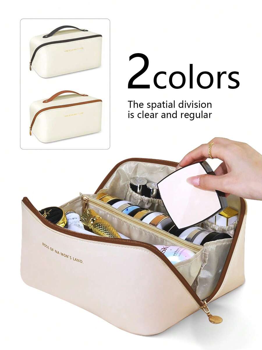 大容量双层化妆包,化妆品收纳包,PU皮革防水化妆包,轻便洗漱化妆包,带隔层的大容量洗漱包,多功能旅行收纳包,旅行居家化妆品收纳包