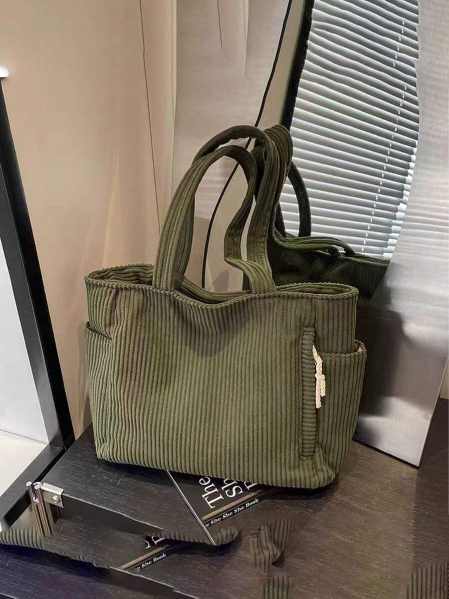 大容量时尚女士单肩手提包,采用柔软耐用的灯芯绒面料,配有侧袋和多个隔层,拉链封口,适合短途旅行、通勤、日常使用,也是情人节礼物的理想之选。