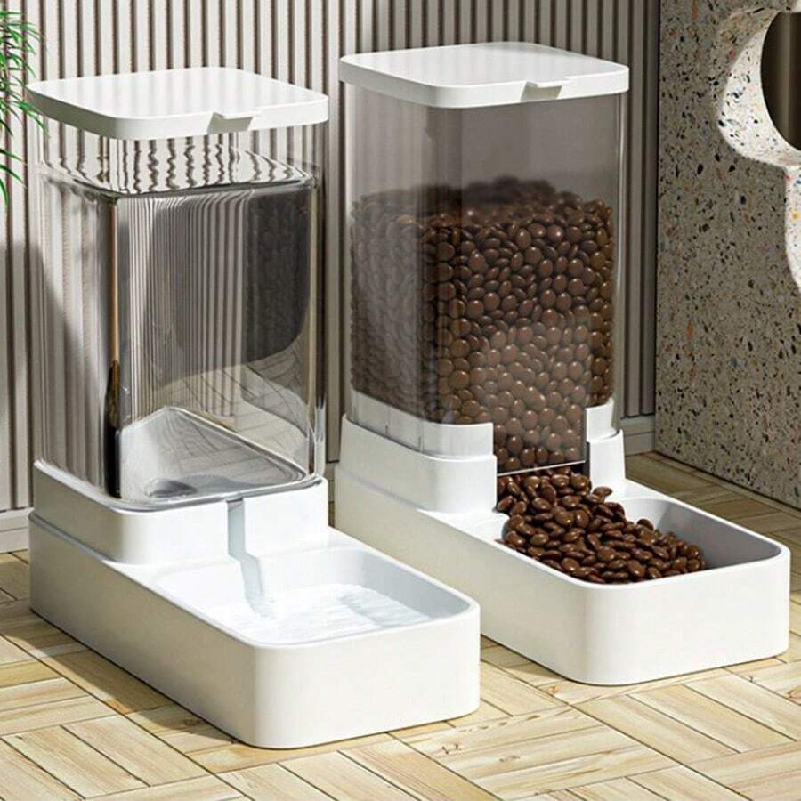 大容量白色透明自動寵物餵食器和飲水器,適用於貓和狗