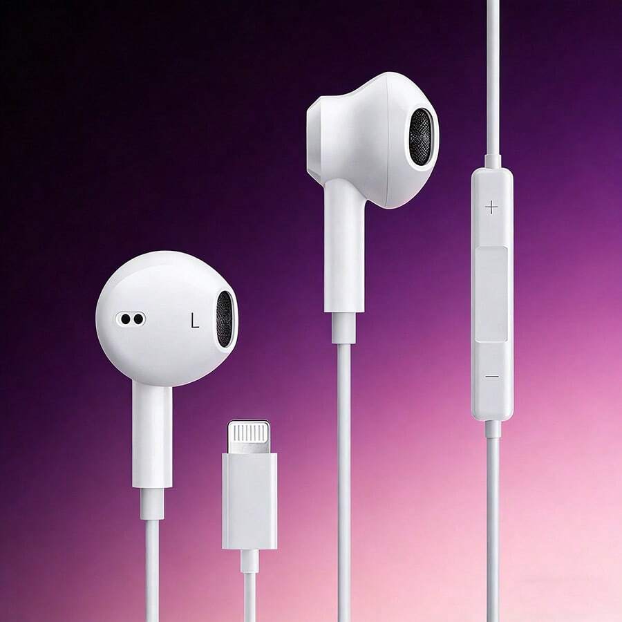 Lightning接口有线耳机 - 高保真音质,内置麦克风和遥控器,兼容iPad和其他带Lightning接口的苹果设备,即插即用,适用于 14/13/12/11/XR/XS/X/8/SE/Pro/Pro Max,支持所有iOS系统,降噪功能,入耳式耳机