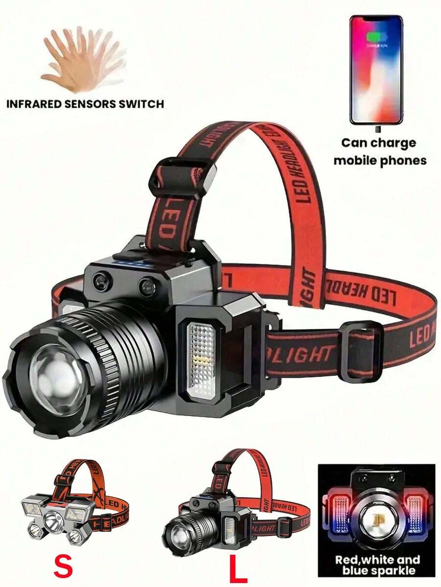 1 个 LED 可充电头灯,超亮聚光灯和泛光灯,可调焦距,360° 可调亮度角度,5 种头灯模式,内置电池 USB 可充电,适合露营、狩猎、钓鱼、徒步旅行 - S/L 尺寸选项