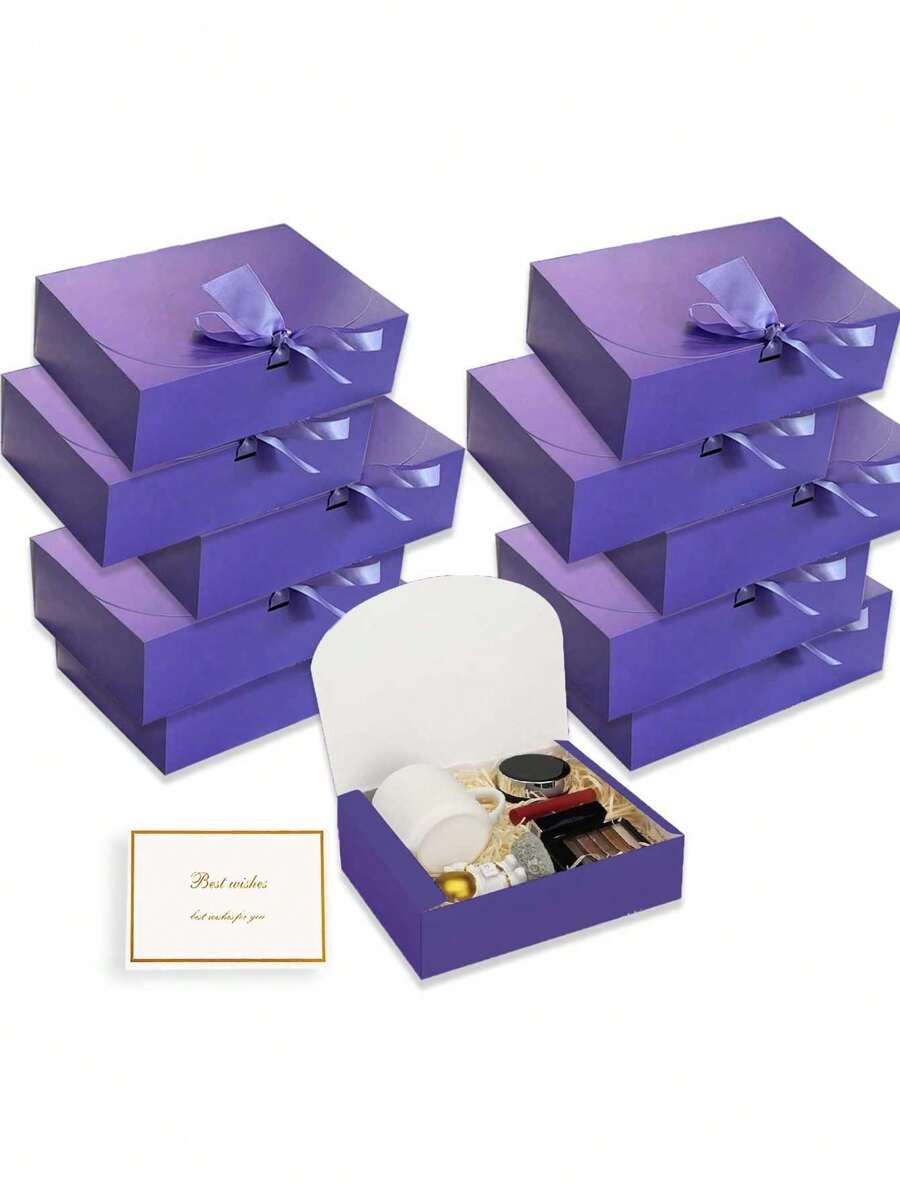10个紫色带盖礼盒,伴郎邀请礼盒,豪华紫色礼盒配丝带,适用于婚礼、生日、派对、圣诞节、伴娘、毕业典礼、情人节礼物