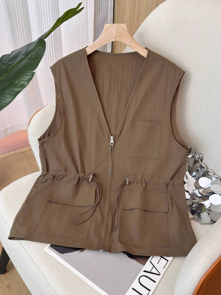 轻便无袖背心外套,新款通勤款式,轻盈透气,V领拉链收腰纯色百搭舒适女款无袖