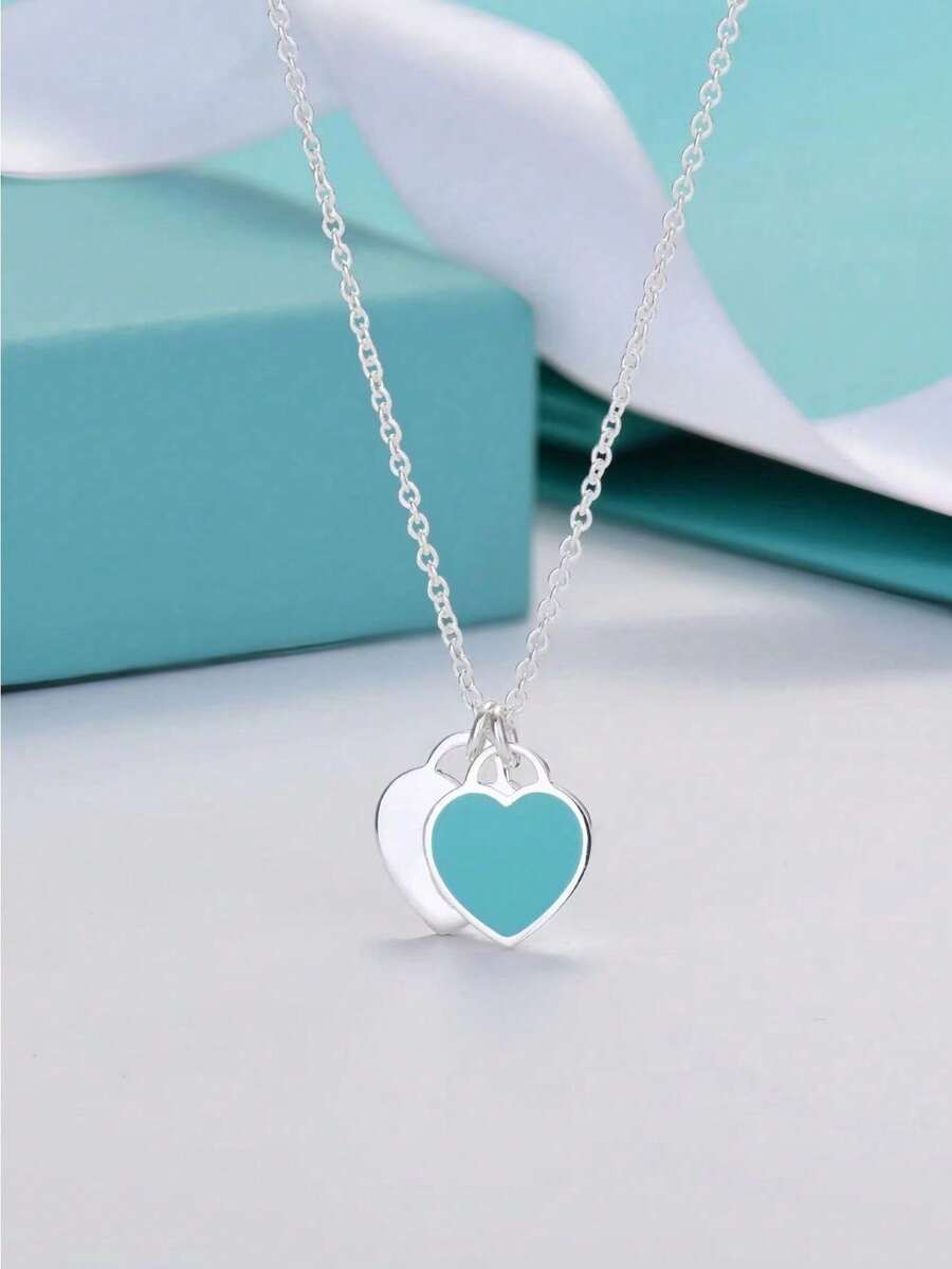 1 时尚爱心纯银项链滴油珐琅蓝红粉色锁骨链双女士心形吊坠适合常规服装送母亲节礼物