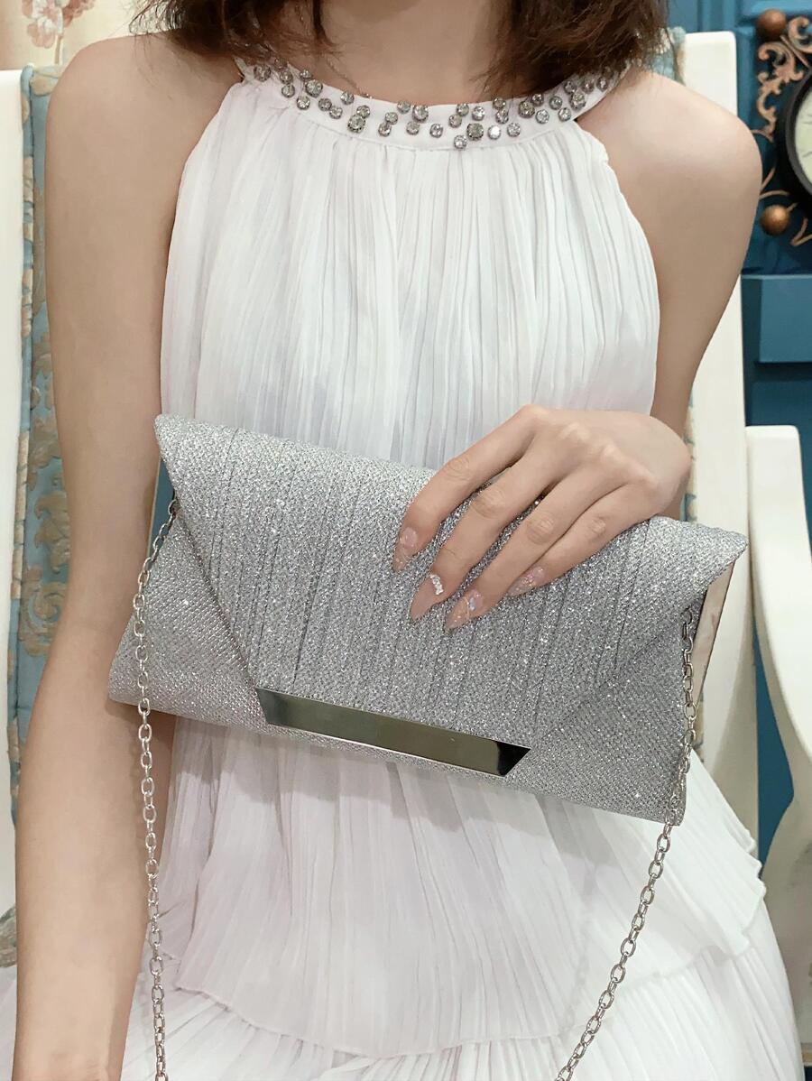 豪華迷人閃亮金屬拼接信封包,磁性鎖扣優雅時尚手拿包,適用於女士生日派對、婚禮、舞會等場合,搭配鏈帶