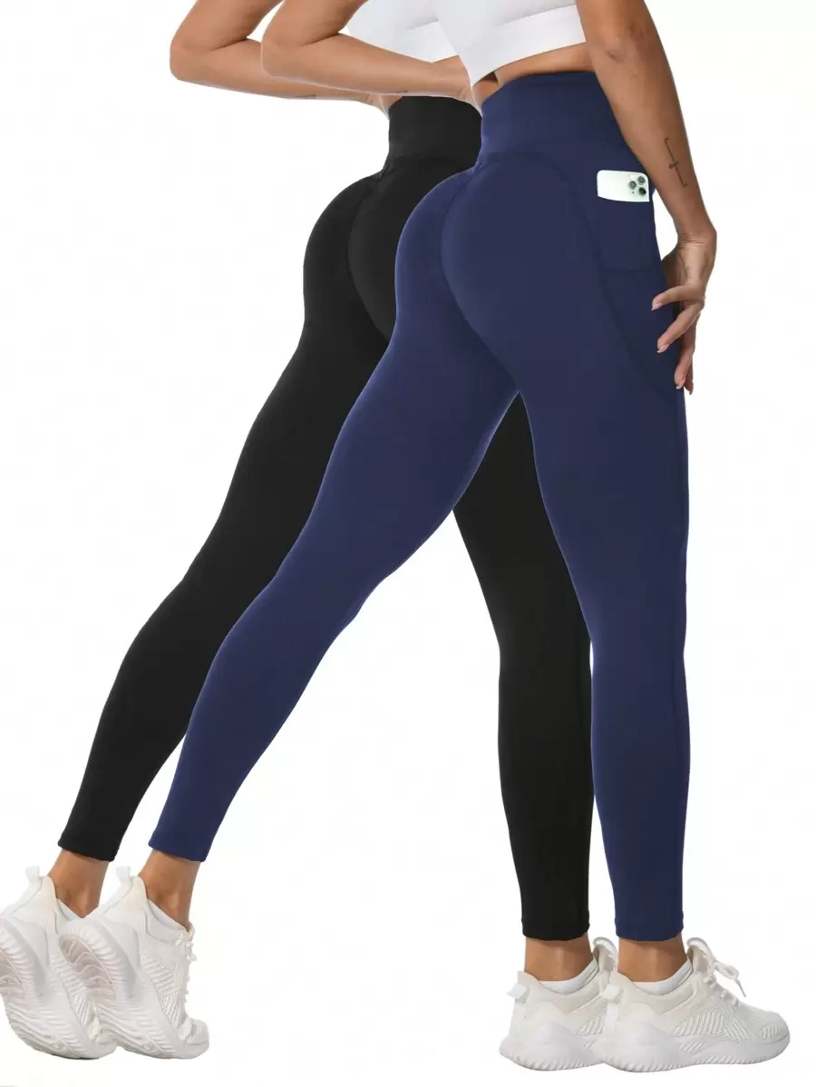 Lynfun 夏季健身两件套女式紧身瑜伽裤带口袋,裸感紧身裤,适合跑步、健身、锻炼