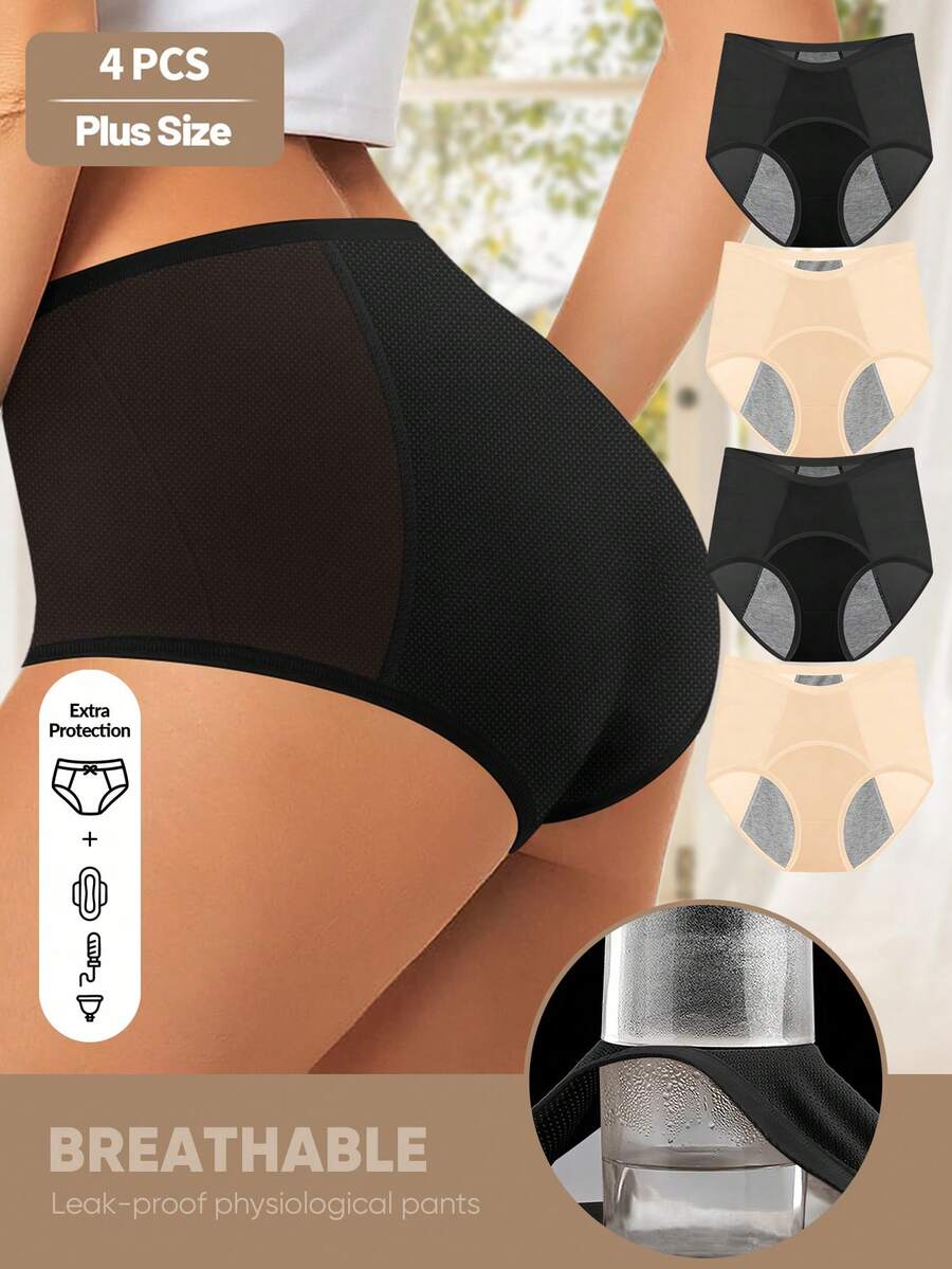 MEIYATING 4件装大码女士无缝透气网眼冰丝生理期防漏高腰内裤