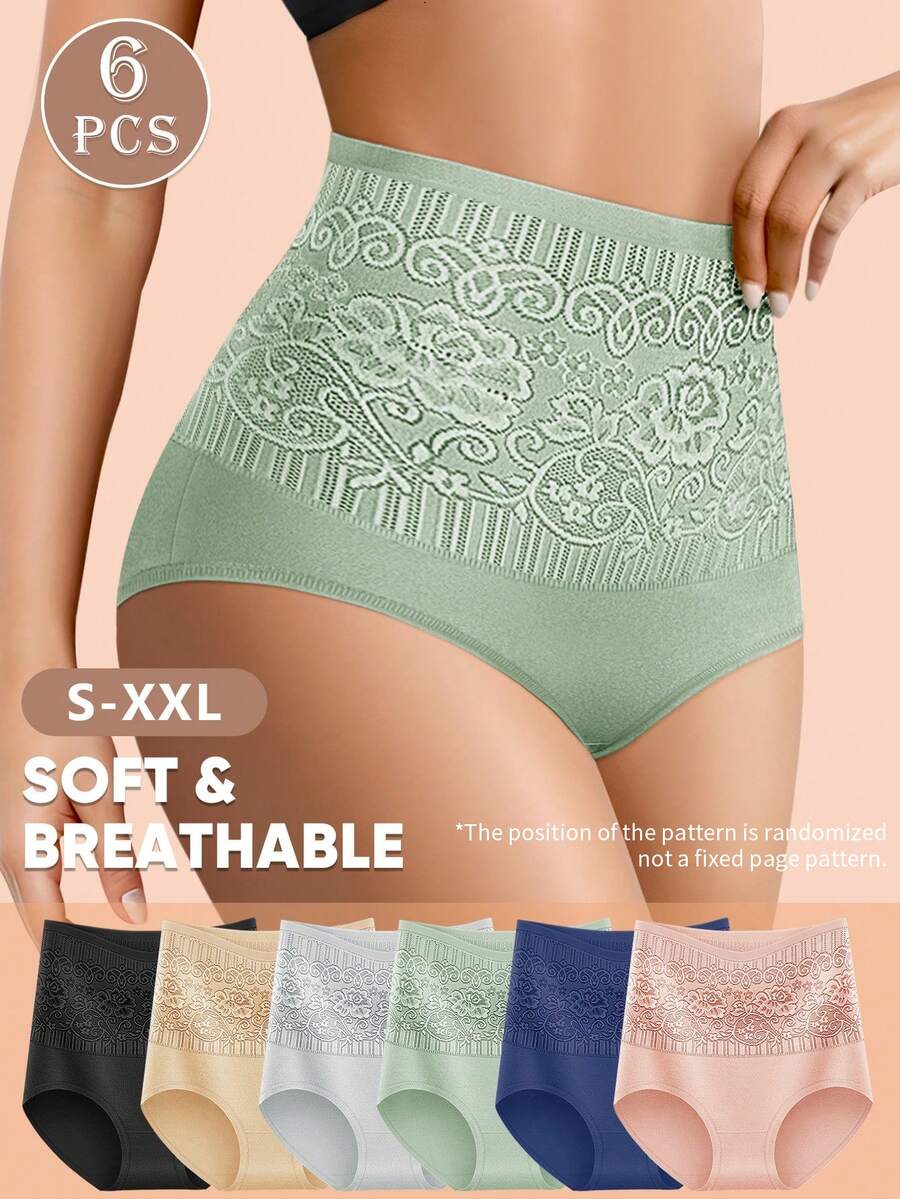 MIOTAN 6条装女士高腰蕾丝拼接柔软透气内裤