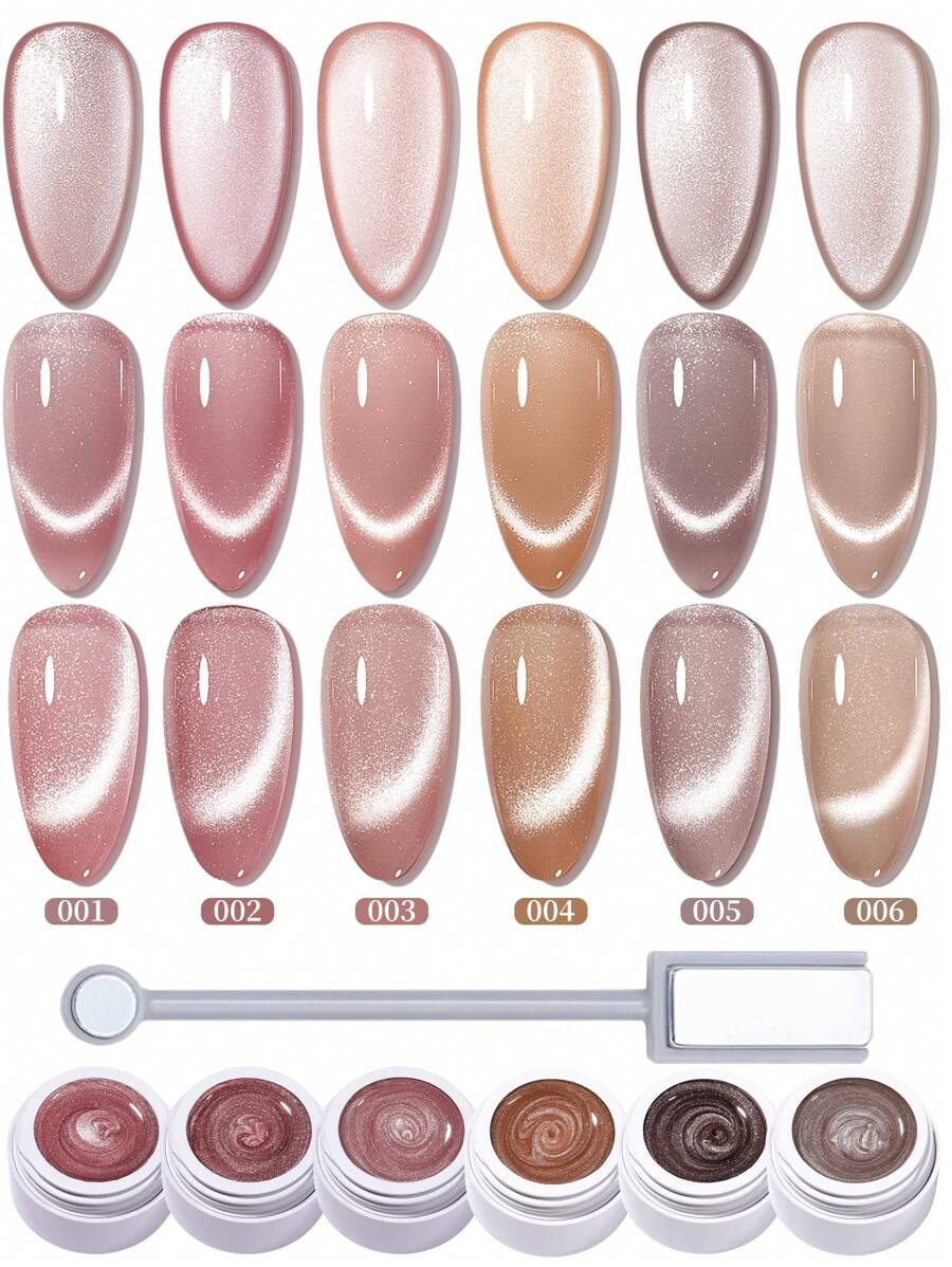 MORDDA 6片装 5克猫肉垫,适用于猫眼磁性凝胶指甲油,可卸UV美甲油,持久闪亮,新年礼物 - 含磁性棒