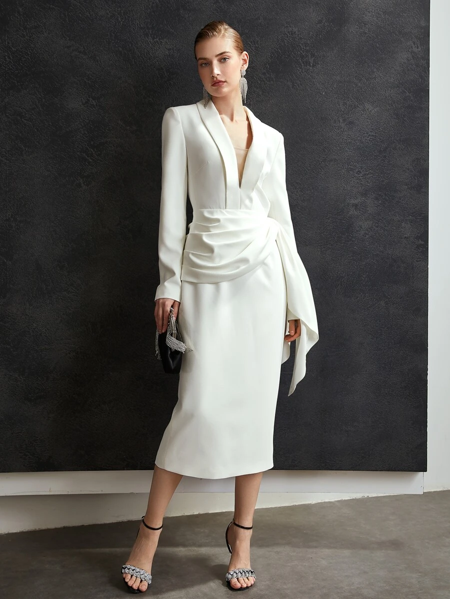 • MOTF 垂坠西装连衣裙 - 白色 - 查看 3