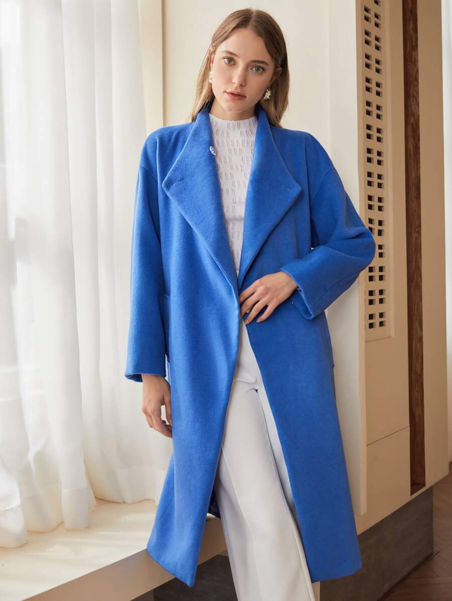 • MOTF PREMIUM 羊毛混紡瀑布腰帶花呢外套 - 藍色 - 查看 8