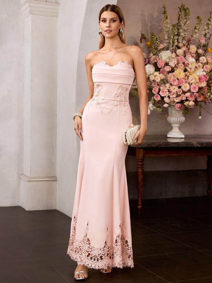 MOTF Soiréza 女士礼服美人鱼裙摆蕾丝拼接长裙