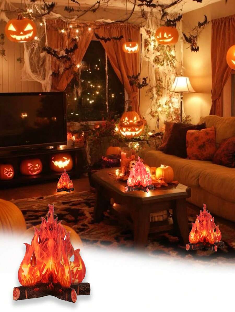 3 件/1 件纸板篝火,3D 假火焰装饰 - 红色和橙色纸质篝火装饰,圣诞节户外装饰,壁炉装饰,适用于派对、圣诞节、万圣节、复活节节日装饰、万圣节家居装饰、万圣节派对用品