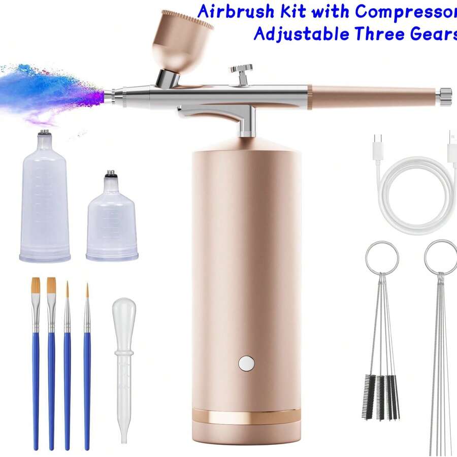 1 件装喷枪套件,带压缩机、喷枪 - 48PSI 高压、可调节三档、防堵塞气刷套装,无绳可充电,带 0.3 毫米喷嘴和清洁刷,适用于美甲、绘画和蛋糕装饰
