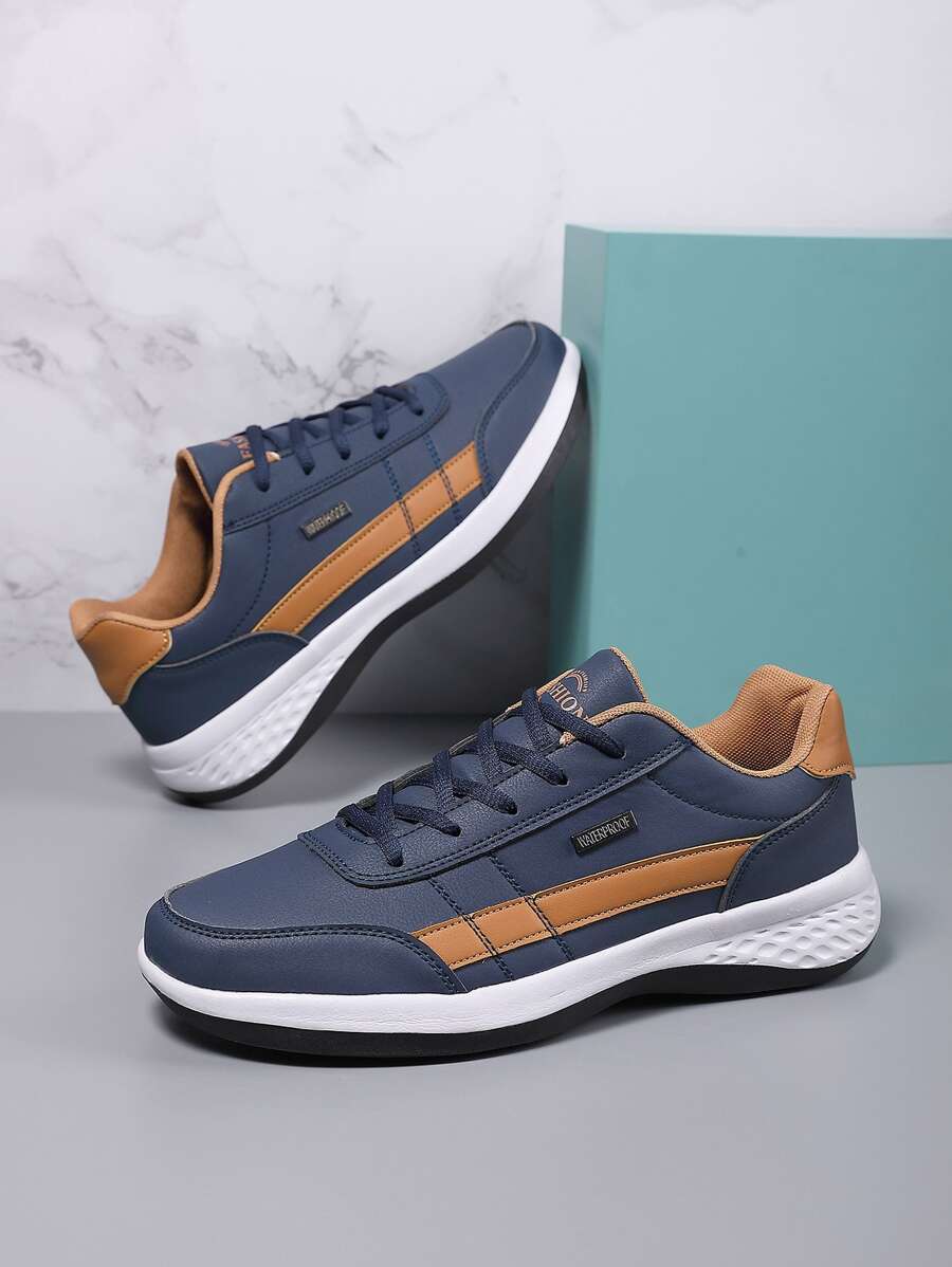 男款字母印花綁帶跑鞋,時尚輕便且舒適的戶外休閒運動運動鞋,黑色