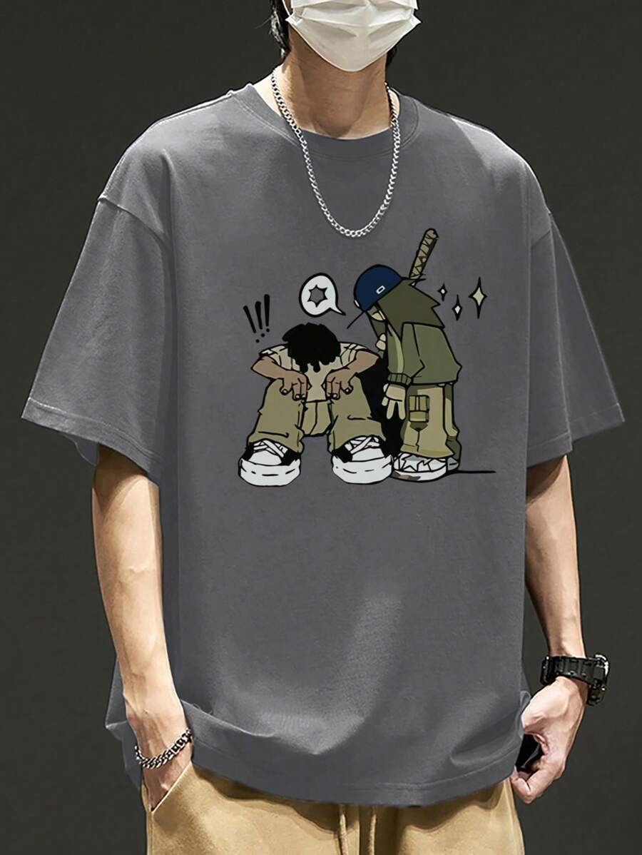 男士卡通印花圆领休闲宽松短袖T恤