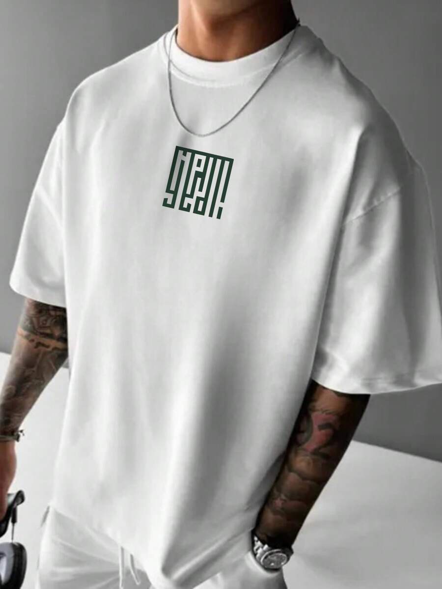 • 男士休闲简约字母印花白色圆领短袖T恤 - 白色 - 查看 4