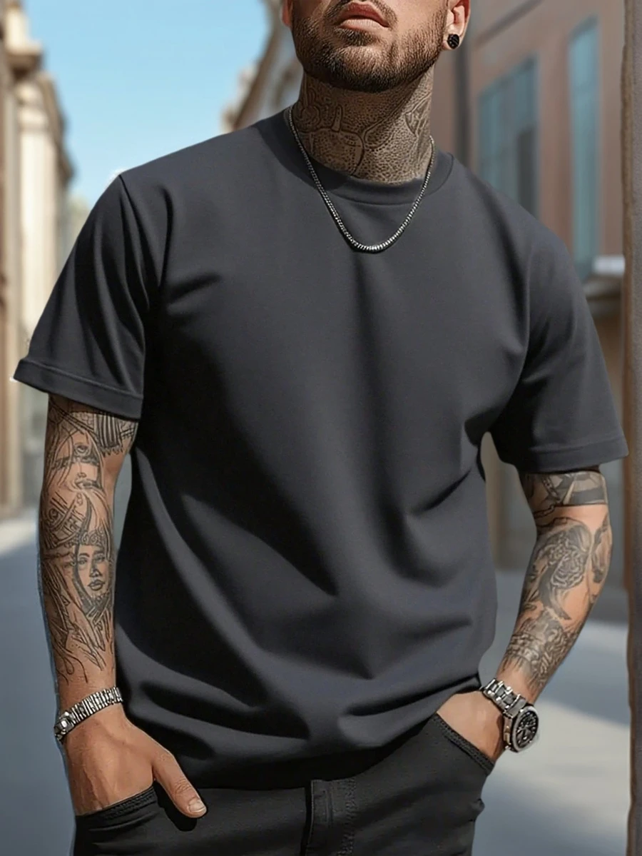 男士休闲纯色短袖T恤,舒适透气,夏季款式