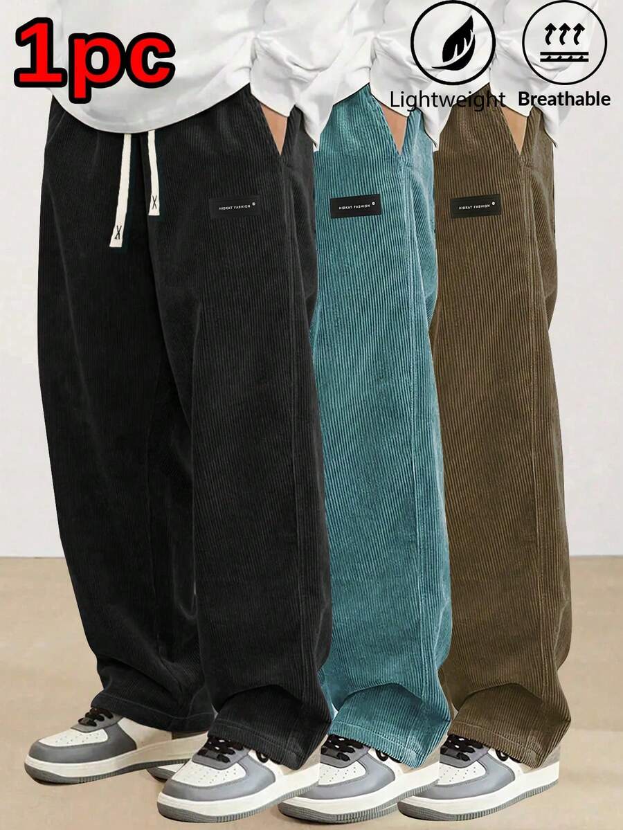 男士松紧腰灯芯绒裤子,时尚抽绳直筒休闲运动裤,春秋季
