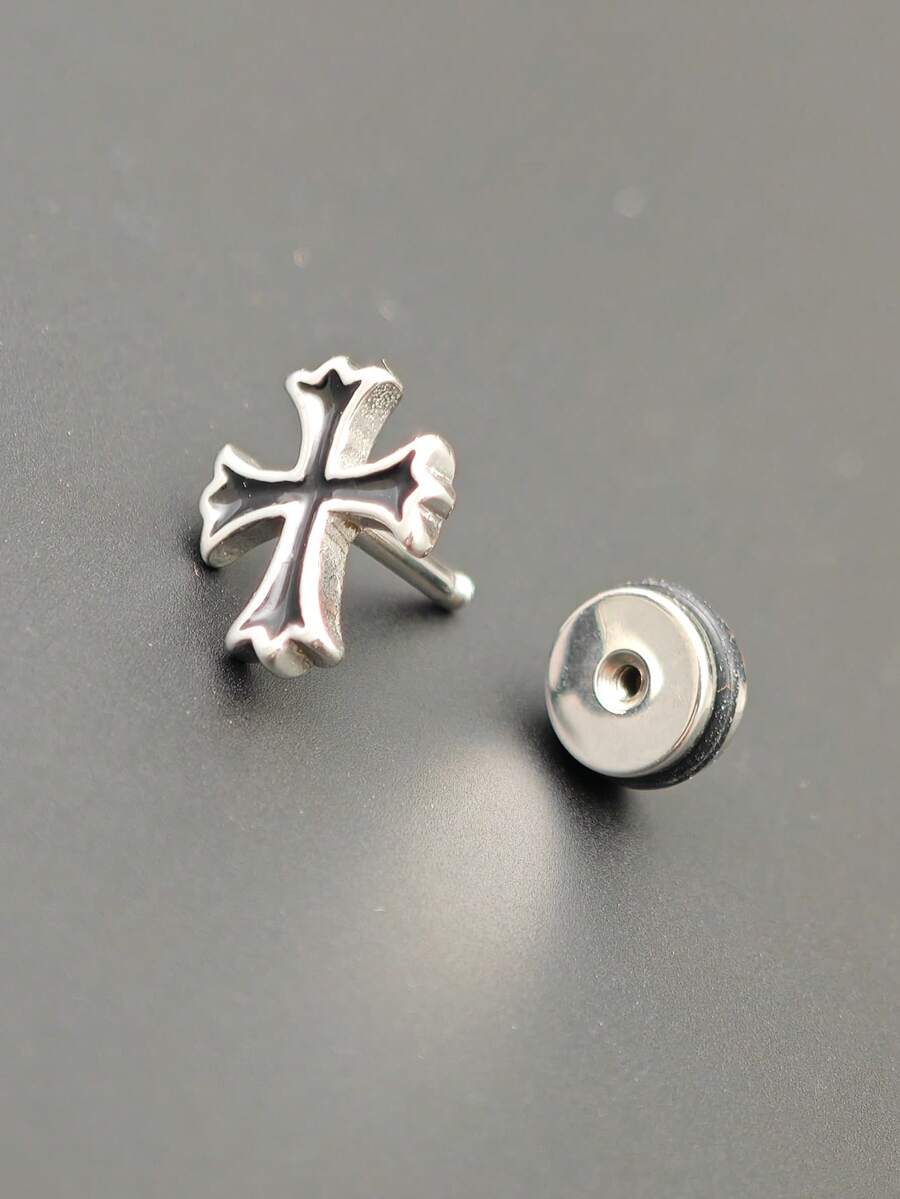 男士钛钢耳环,十字架设计,暗黑风格男士耳环