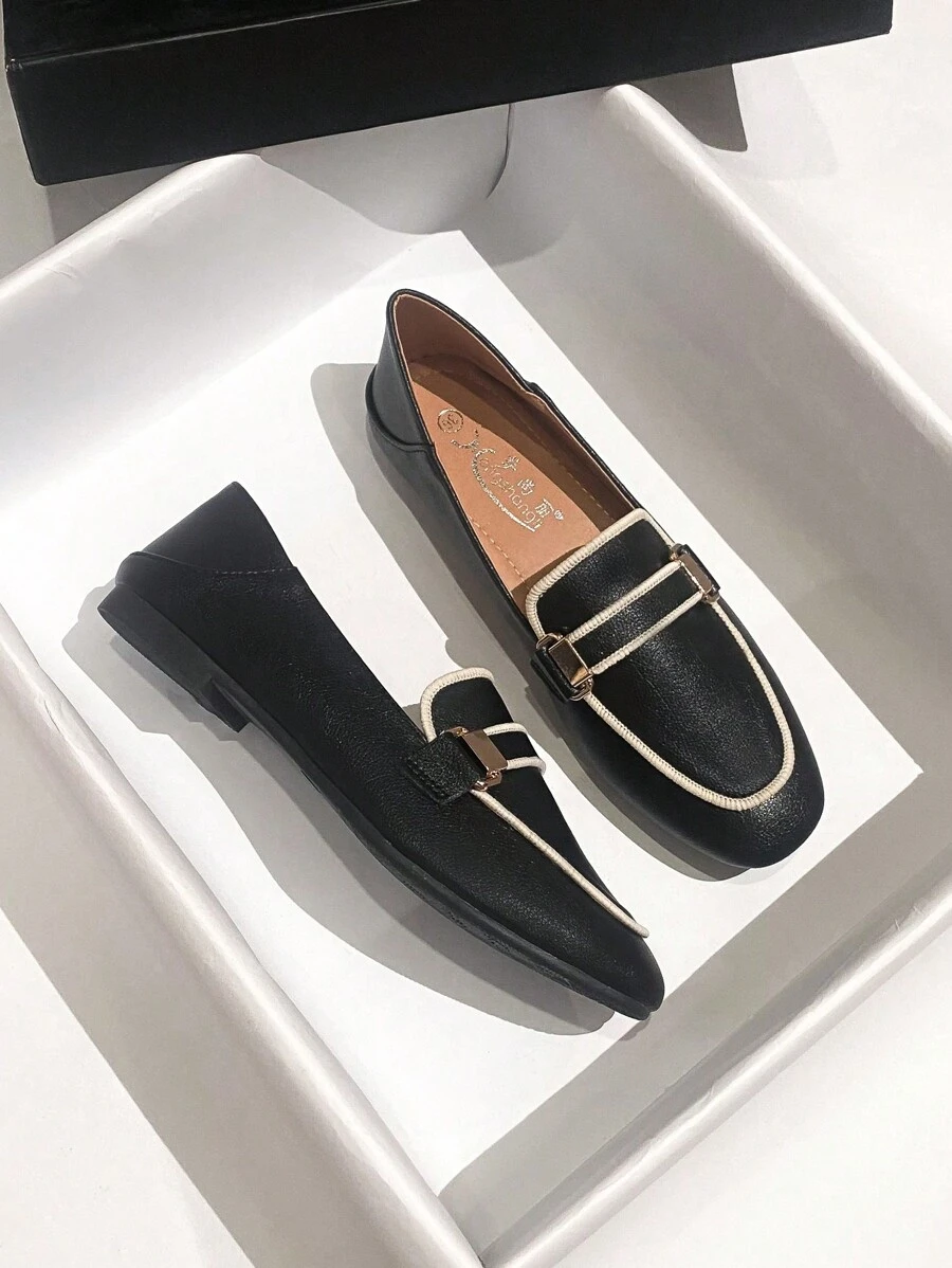Mengshangli 2025年秋季女士金属装饰撞色滚边平底乐福鞋,优雅户外平底鞋