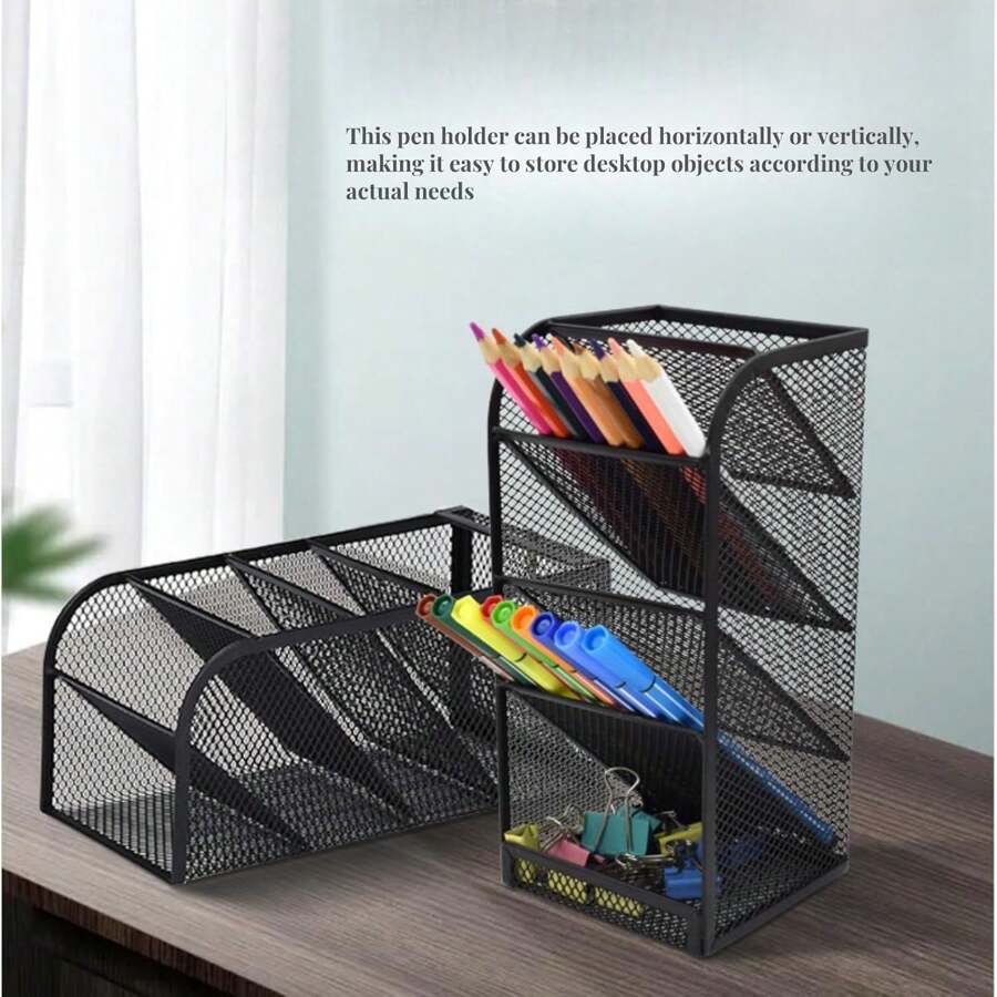 网状桌面收纳盒 - 多功能笔筒和桌面文具收纳盒,适用于学校、家庭办公室、美术用品