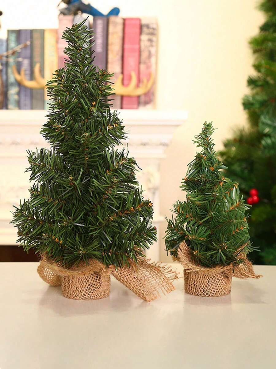 迷你圣诞树,人造迷你松树圣诞树,带雪景和圣诞装饰的手工艺品,配粗麻布袋底座,小型人造圣诞树,适合冬季桌面摆件、圣诞礼物、婚礼装饰、房间装饰、家居圣诞礼物、圣诞装饰
