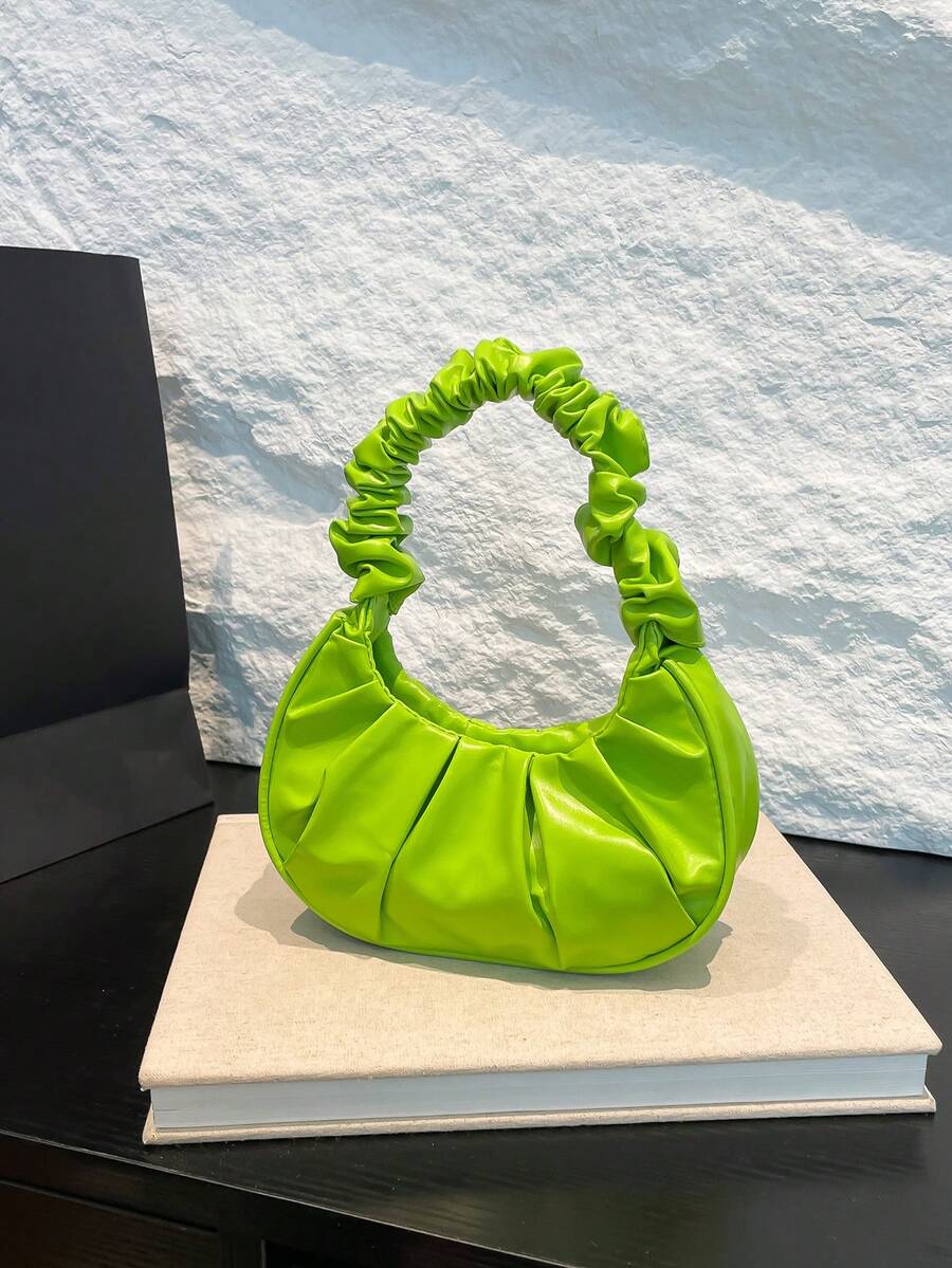 迷你时尚纯色褶皱手提包多用途女士手拿包