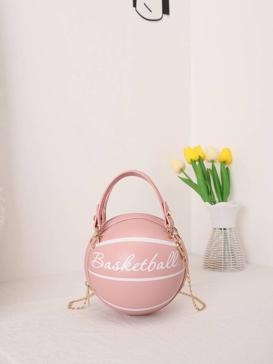 迷你字母圖案手提包迷你字母圖案籃球設計圓形包時尚鏈條肩帶圓形錢包手掌拉鍊包