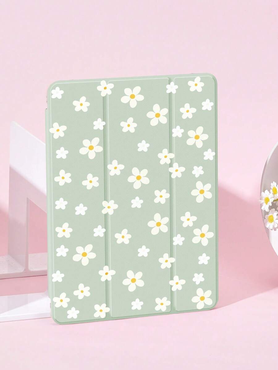 简约花卉图案平板电脑保护套,兼容 iPad 9.7/10.2/10.5/10.9/12.9/Pro 11(第十代)、Galaxy Tab S6 Lite 10.4 英寸、Kindle Paperwhite 第十二代(2024 年款)、Kindle 第十一代(2022 年款),柔软防震,带智能支架/自动唤醒/睡眠功能
