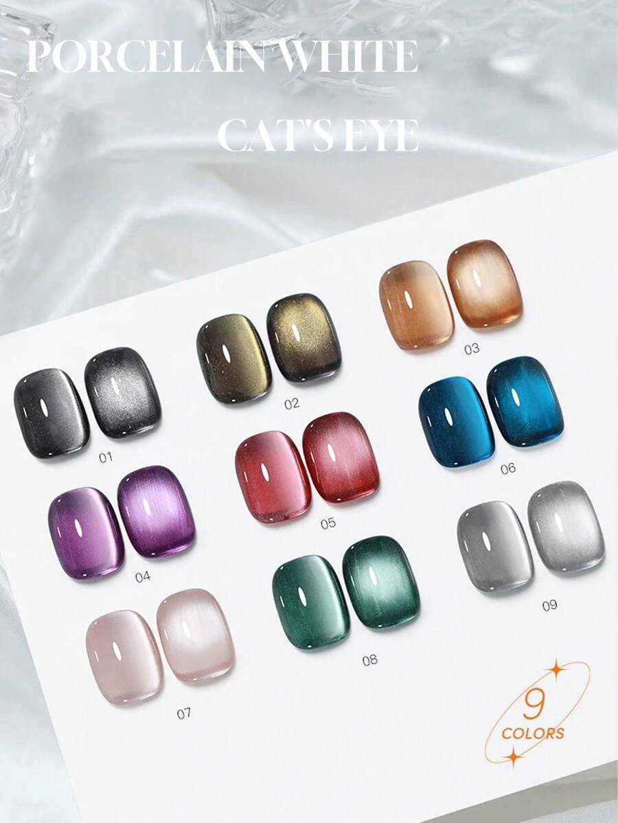 Miss Leia 9件装15ml夏季美甲闪光水晶玻璃珠瓷白色猫眼凝胶指甲油新款小灯泡水晶猫眼高密度月光白磁性指甲油流行色凝胶清漆初学者美甲半永久可浸泡UV LED固化适用于美甲沙龙套装DIY家居节日女士礼物美甲
