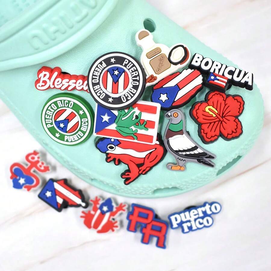 20 件/套波多黎各国旗 PVC 鞋饰,可爱狗青蛙蝴蝶花朵 PR 图案 DIY 鞋配件,适合派对节日礼物