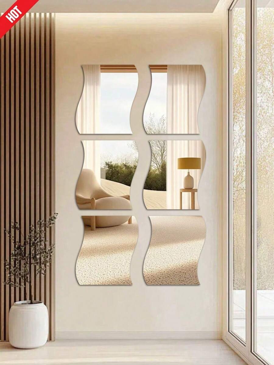 6/12片/套 波浪几何镜面墙贴,3D艺术DIY亚克力镜面墙贴,自粘防水墙贴,适用于家居客厅卧室沙发电视背景墙装饰、办公室墙面装饰,无需钻孔防水镜面贴片,易于安装且用途广泛,返校必备,撕掉外层保护膜!最佳生日礼物(仅供装饰,不可用作镜子,可能会导致变形),家居装饰,返校房间装饰,学习用品