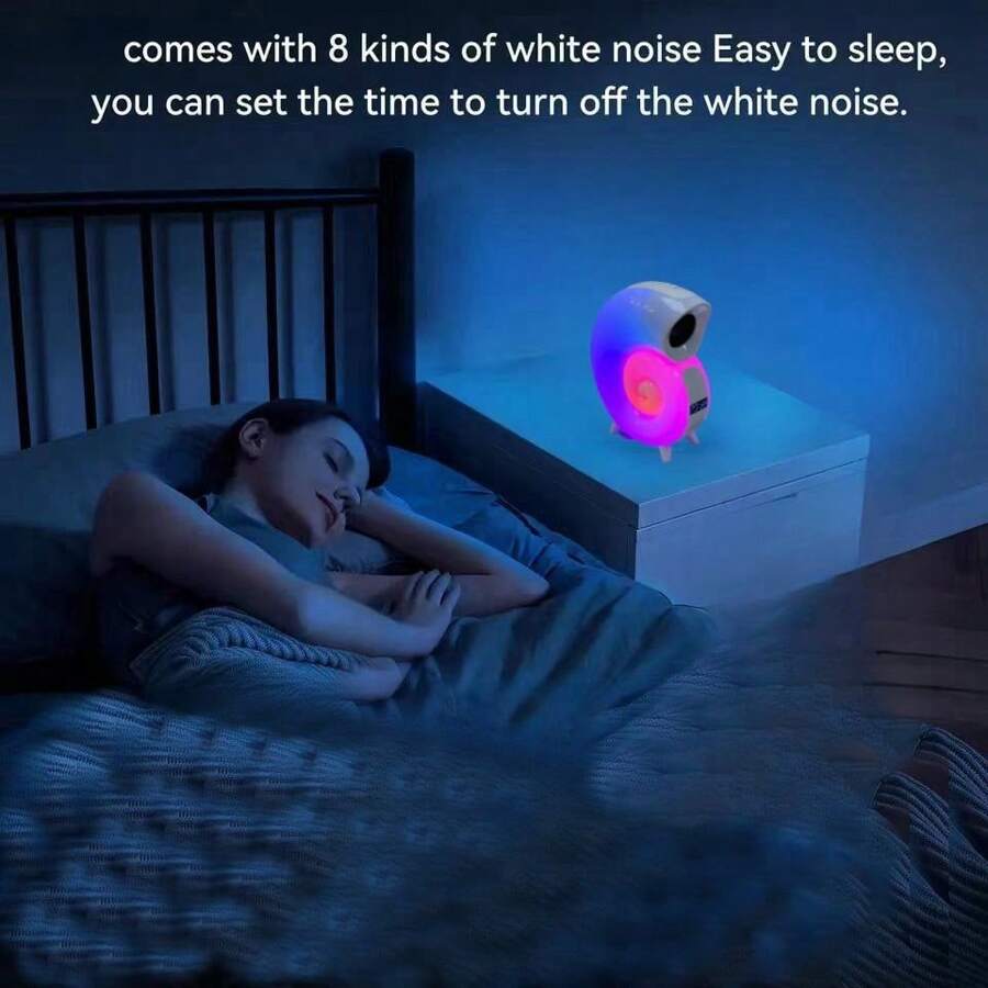 音樂燈床頭小夜燈喚醒燈鬧鐘白噪音機無線音箱七彩音樂節奏燈海螺帶時鐘無線音箱七彩帶時鐘床頭小夜燈