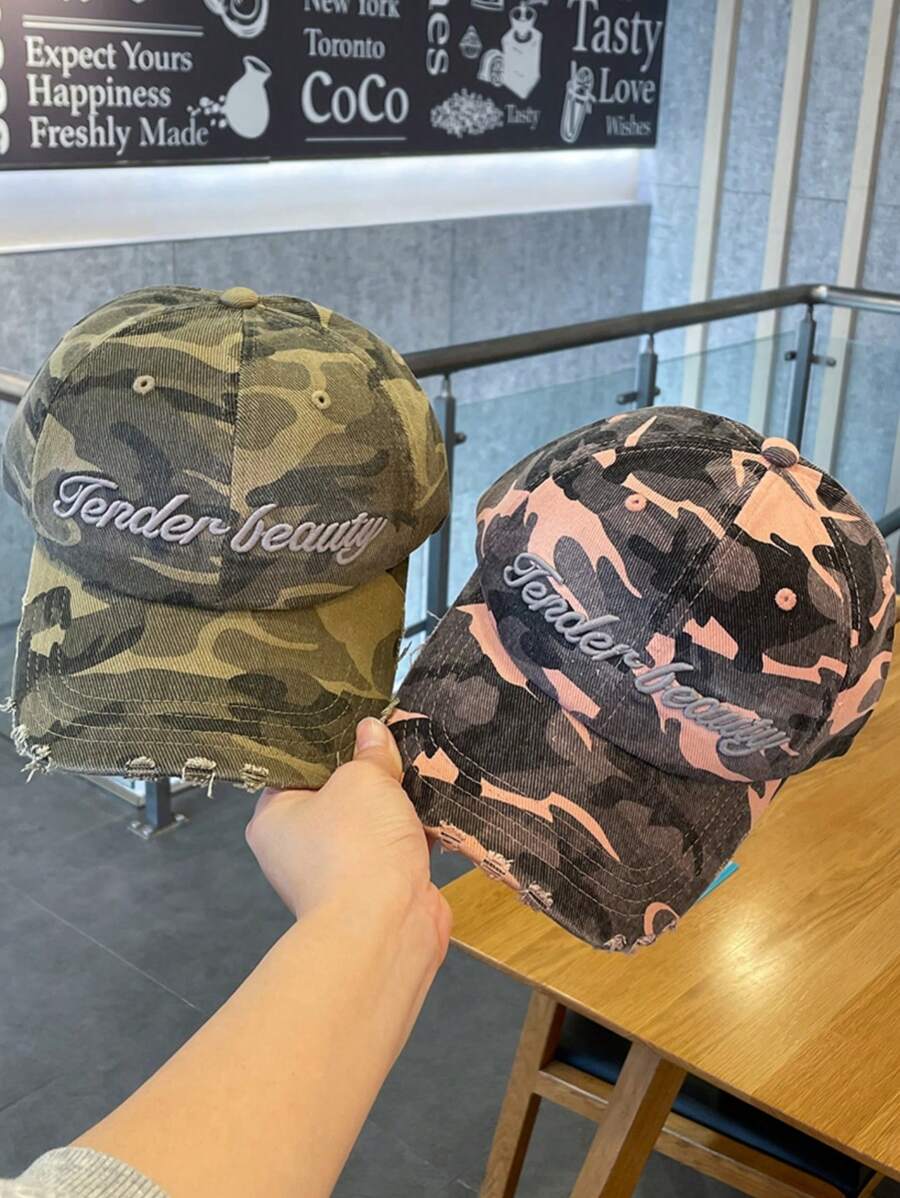 沙漠迷彩户外立体字母刺绣水洗做旧破洞时尚弧形帽檐棒球帽,男士棒球帽,小众设计帽子,水洗做旧迷彩帽,3D字母刺绣软顶帽,时尚水洗破洞迷彩帽,女士棒球帽,情侣帽