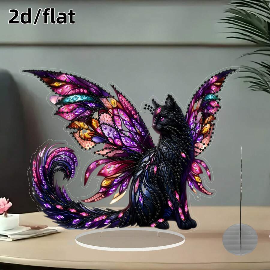 2D/平面 DIY 钻石艺术画套装、桌面装饰特殊形状钻石桌面装饰、家居立式宝石绘画工艺套装、波西米亚风格配饰、钻石猫圣帕特里克节礼物、家居桌面装饰、适合情人节和新年礼物