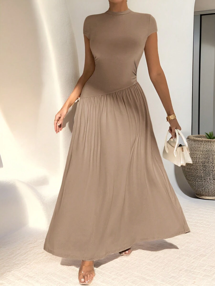• Firerie 优雅简约纯色短袖合身立领不对称 A 字腰长裙