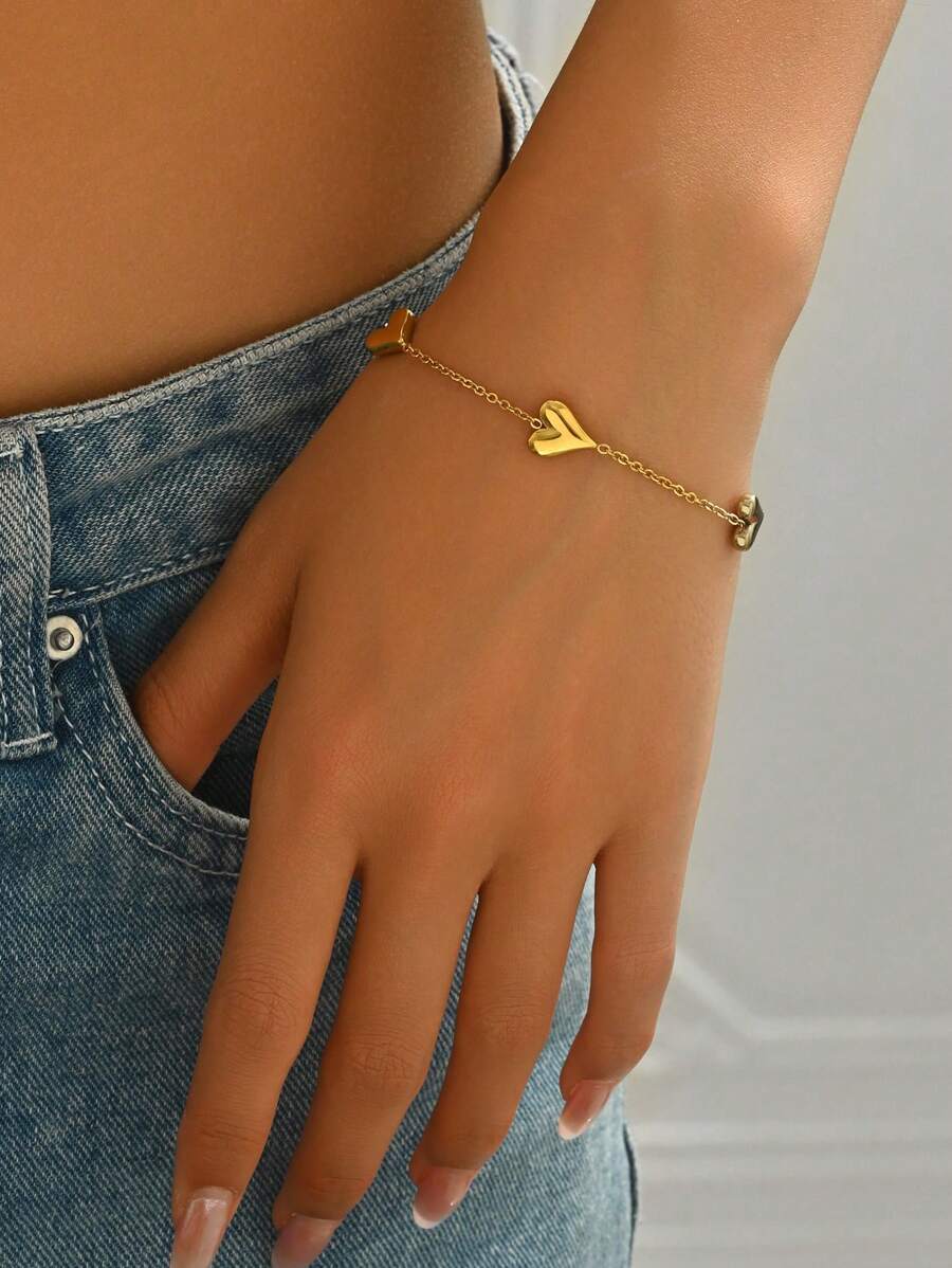 1 件复古简约心形链手链,简约百搭,适合日常佩戴情人节、妈妈、母亲、母亲节、礼物