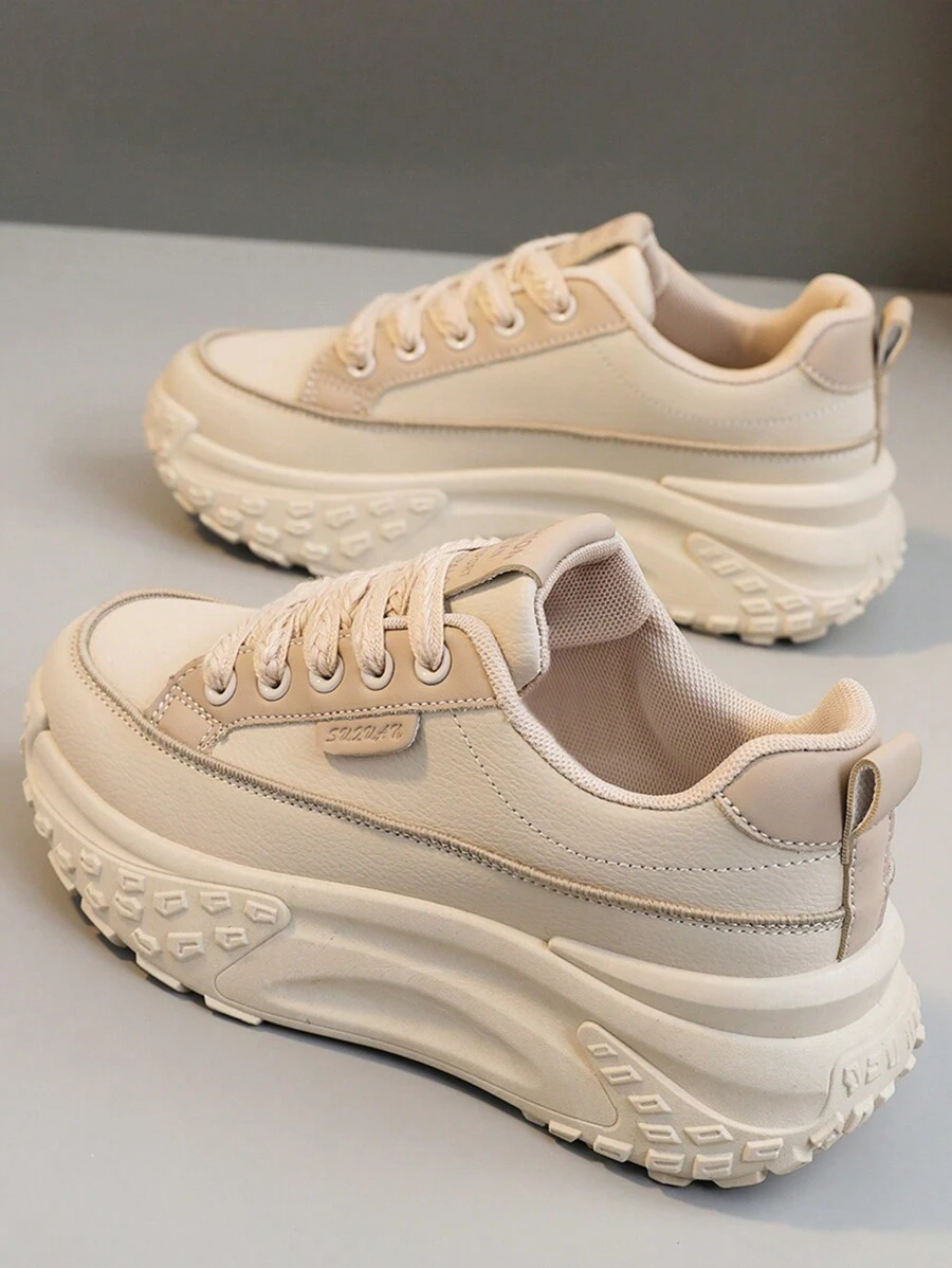 新款 2025 拼色厚底运动鞋,女士真皮高帮休闲鞋,时尚学生韩版