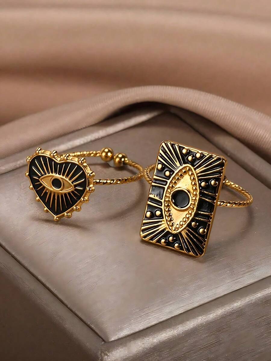新款黑色珐琅邪眼心形戒指,不锈钢可调节开口戒指,18K镀金不褪色吊坠,时尚饰品,节日派对配饰,情人节礼物