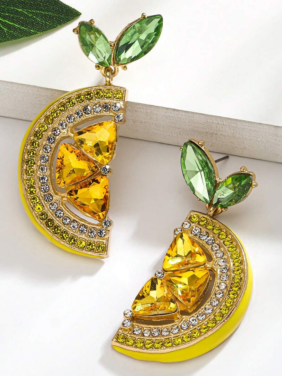 新款时尚个性高档锆石镶嵌钻石柠檬吊坠耳环,欧美风格水果耳环,适合女士日常佩戴和送礼