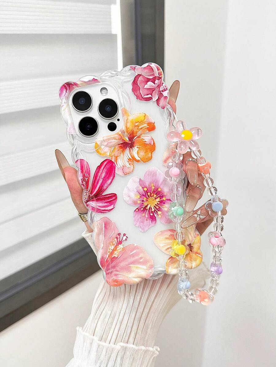 全新花朵图案针织波浪边保护壳带腕带适用于 16 Pro Max、 13、 14、 11、 XS、 XR、 7/8 Plus、P12/P13/P14 Pro Max,柔软防摔可爱时尚厚手机壳保护套防水防震防刮
