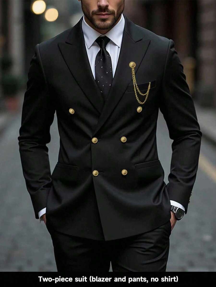 Calvornis 两件套男士纯色时尚双排扣夹克和裤子西装,商务宴会黑色西装,双排扣黑色西装套装。男士双排扣西装男士黑色西装套装男士燕尾服西装男士黑色正装裤男士两件套夹克西装,老款风格