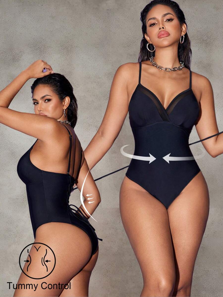 Shapewave 1 件女士网眼抽绳细肩带连体泳衣