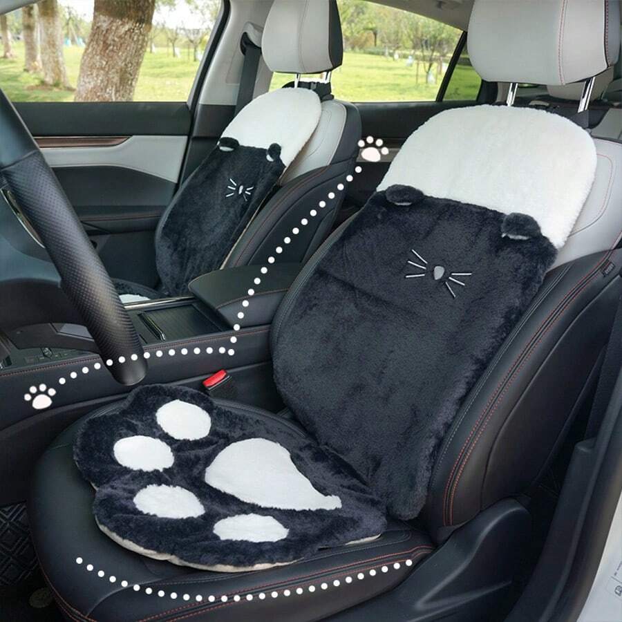 1件装毛绒座垫冬季创意猫爪格纹汽车保暖防滑座垫四季通用汽车座垫