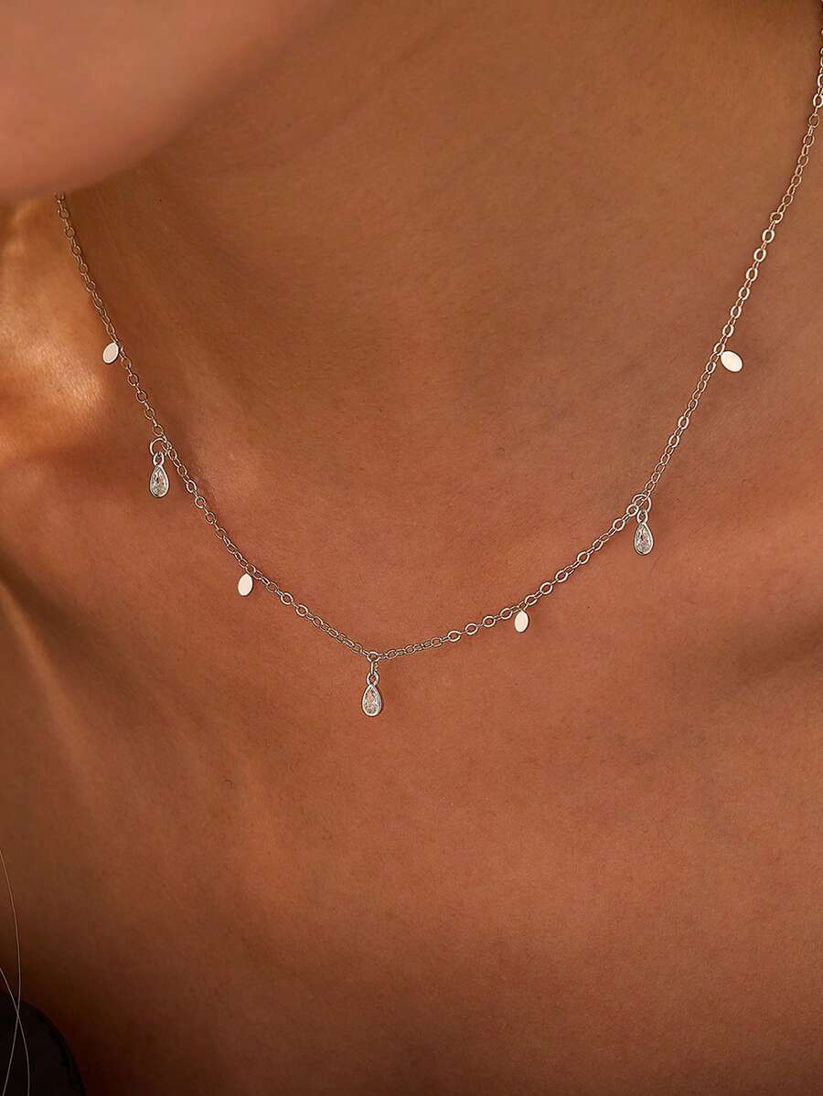 • Nooxian 方晶鋯石水滴吊墜項鏈 - 銀色 - 查看 5