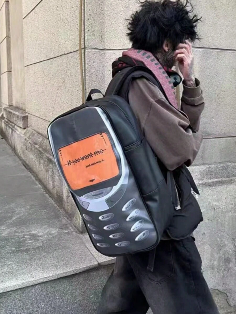 新奇复古老式单肩包'如果你想要我,请发短信给我',手机趣味电话形状大容量 PU 皮革背包科技迷玩具用品背包学校背包学生书包书包礼品便携时尚休闲背包度假腰包礼品复古露营返校沙滩包复古笔记本电脑包运动生活夏季夏季包春假男士包黑色包礼品包旅行包徒步旅行包周末包背包旅行必备品大包
