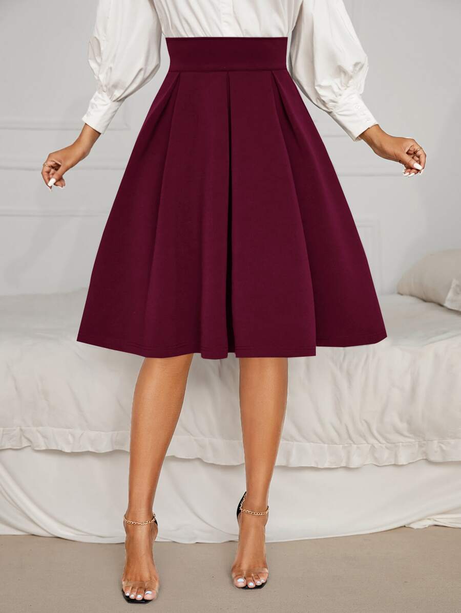SHEIN Privé 素色高腰傘狀短裙