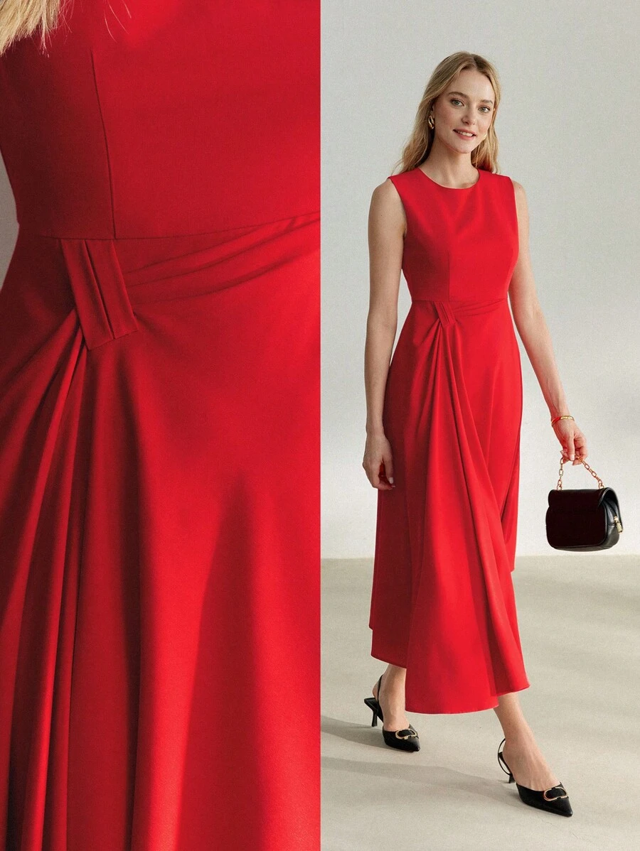 MOTF PREMIUM 純色無袖喇叭下擺連身裙